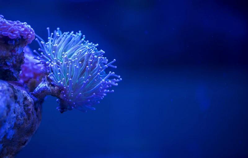 Coral polyps use stinging tentacles to catch food floating in the water, like tiny plankton.